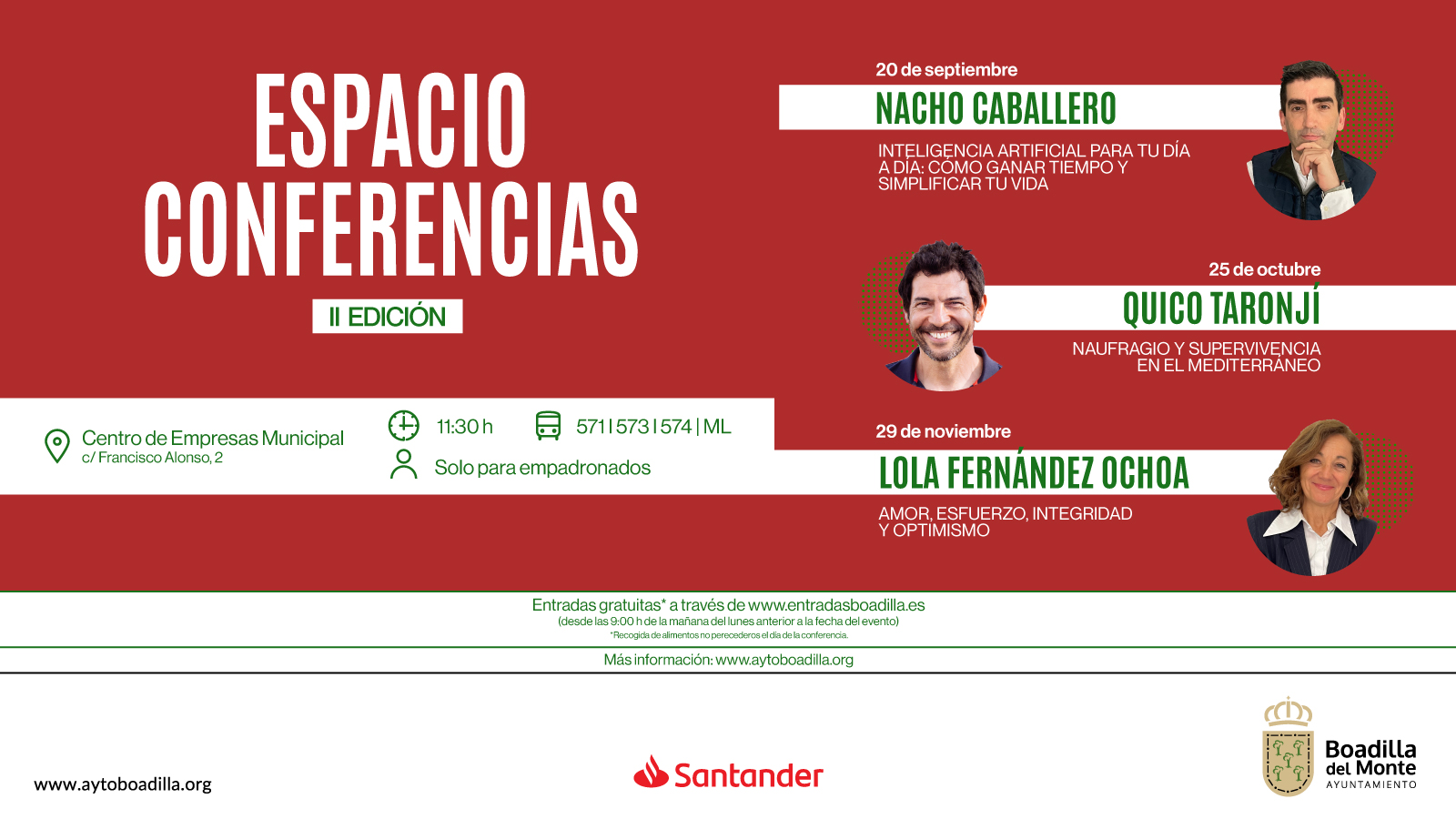 El Área de Innovación y Emprendimiento del Ayuntamiento de Boadilla del Monte ha organizado la II edición del ciclo “Espacio Conferencias”, que se desarrollará este trimestre en el Centro de Empresas, siempre a las 11:30 horas.