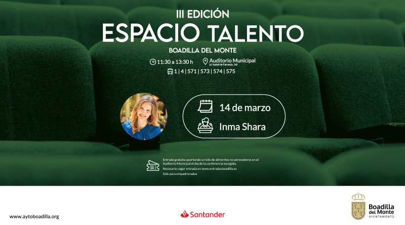 El próximo sábado, 14 de marzo, a las 11:30 horas, el Auditorio Municipal Raphael acogerá, dentro del ciclo Espacio Talento, la conferencia de Inma Shara, reconocida directora de orquesta y compositora, con más de 20 años de trayectoria al frente de prestigiosas orquestas nacionales e internacionales.​
