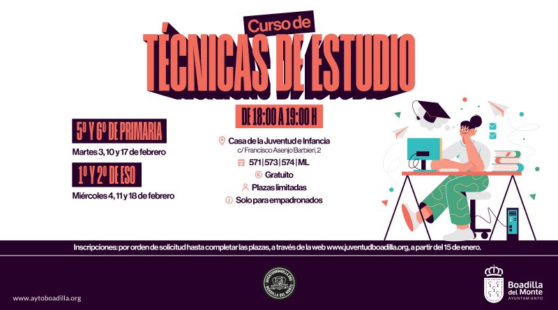 Con esta propuesta, la Concejalía de Juventud busca ofrecer a los estudiantes herramientas prácticas para organizar mejor su tiempo, mejorar la concentración y adquirir hábitos de estudio eficaces que les ayuden a afrontar con mayor seguridad su etapa escolar.