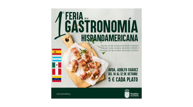 Del 10 al 12 de octubre, la avenida Adolfo Suárez se convertirá en el epicentro de los sabores tradicionales de España y Latinoamérica. Durante tres días, Boadilla del Monte acogerá la I Feria de la Gastronomía Hispanoamericana, un evento culinario en el que 13 establecimientos locales ofrecerán una variada muestra de platos típicos de España, Perú, Venezuela, Honduras o México, entre otros países.