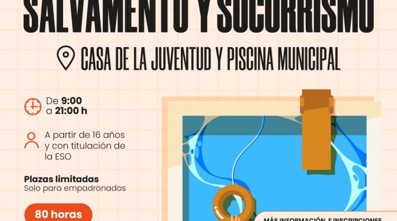 El curso va dirigido a jóvenes de 16 a 30 años y se impartirá los días 27, 30 y 31 de marzo, y 1 y 6 de abril en la Casa de la Juventud y en la piscina cubierta municipal. El horario será de 9:00 a 21:00 horas. Para obtener el título, los alumnos deberán superar las pruebas físicas y la fase teórica. En total habrá 80 horas de formación, 43 de temario presencial y 37 de temario online.