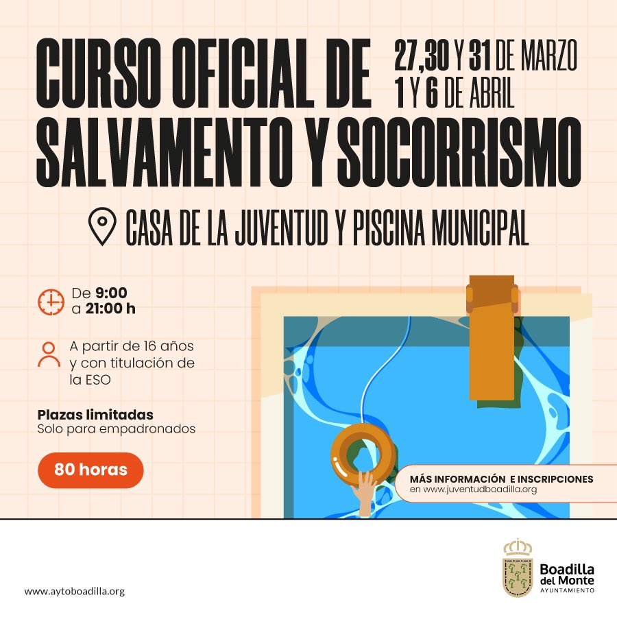 El curso va dirigido a jóvenes de 16 a 30 años y se impartirá los días 27, 30 y 31 de marzo, y 1 y 6 de abril en la Casa de la Juventud y en la piscina cubierta municipal. El horario será de 9:00 a 21:00 horas. Para obtener el título, los alumnos deberán superar las pruebas físicas y la fase teórica. En total habrá 80 horas de formación, 43 de temario presencial y 37 de temario online.