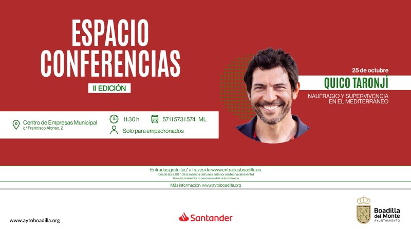 El encuentro se celebrará a las 11:30 horas en el Centro de Empresas y la entrada será gratuita, previa reserva, a partir del próximo lunes, a través de la web www.entradasboadilla.es.