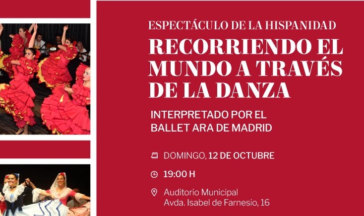 Para conmemorar el Día de la Hispanidad, el ballet Ara de Madrid ofrecerá, bajo la dirección y coreografía de Carmina Villar, el espectáculo Recorriendo el mundo a través de la danza en el que se mostrarán bailes de España y de otros lugares del mundo.